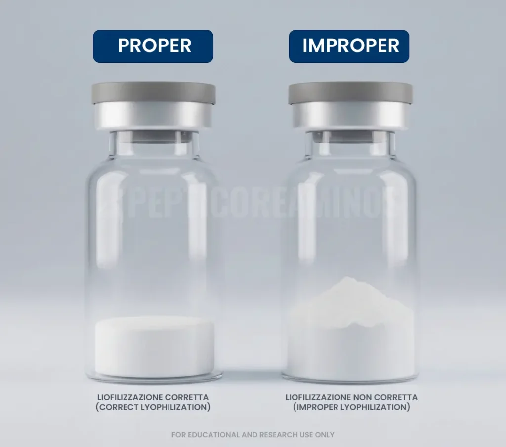 L’aspetto di un peptide liofilizzato è uno dei primi indicatori della qualità del processo.